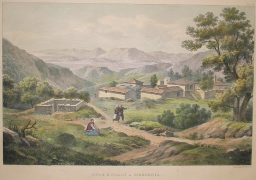 Γκραβούρα του Α. Richter από το 1790. Πανοραμική άποψη του Μεσσηνιακού κάμπου.Η ίδια εικόνα σε ασπρόμαυρη λιθογραφία.